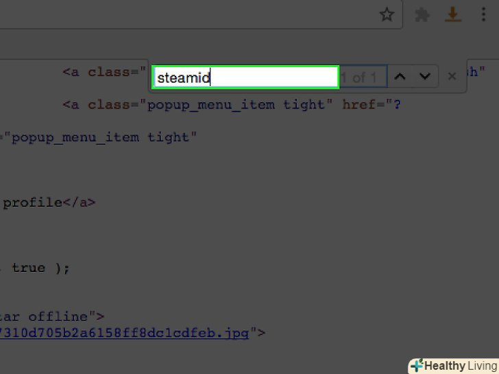 Введіть у пошукове поле steamid . таким чином, буде виконано пошук всіх слів, відповідних запиту (в нашому випадку це steamid). На сторінці з'явиться єдиний результат, а поруч з ним буде вказано STEAM ID.
