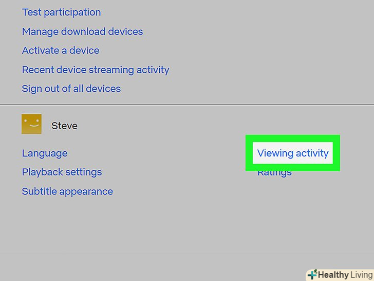 Прокрутіть вниз і натиснітьViewing activity (Історія перегляду). це посилання знаходиться в центральному стовпці розділу «My profile» (Мій профіль).