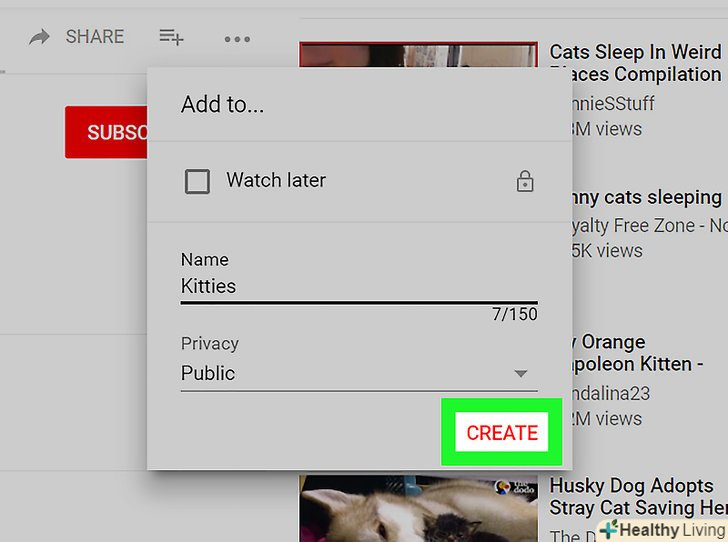 Клацніть поСтворити . це червона кнопка в нижньому правому куті меню. Список відтворення буде створено та збережено у вашому профілі.
