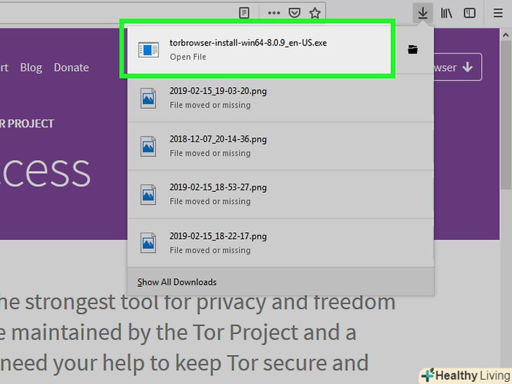 Відкрийте сторінку завантаження Tor. перейдіть на сторінку https://www.torproject.org/download/download-easy.html.en в браузері.