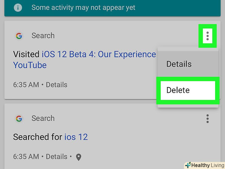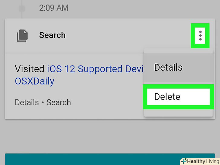 Видаліть елементи (якщо потрібно). щоб видалити певний елемент з історії Google, натисніть «⋮» праворуч від елемента, а потім двічі торкніться «Видалити».- Також можна видалити всю історію Google; для цього натисніть « Видалити», торкніться «Видалити дії за», Виберіть «весь час» в меню «Видалити за датою», а потім двічі натисніть «Видалити».