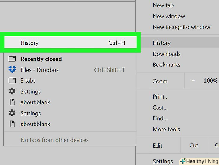 НатиснітьІсторія . ця опція знаходиться у верхній частині спливаючого меню. Відкриється сторінка»Історія".