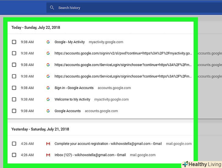 Перегляньте свою історію Google. Прокрутіть список дій, щоб завантажити старі записи.