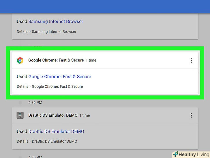 Виберіть певну категорію. щоб переглянути історію в певному розділі (наприклад, Chrome), клацніть по заголовку розділу У верхній частині сторінки.
