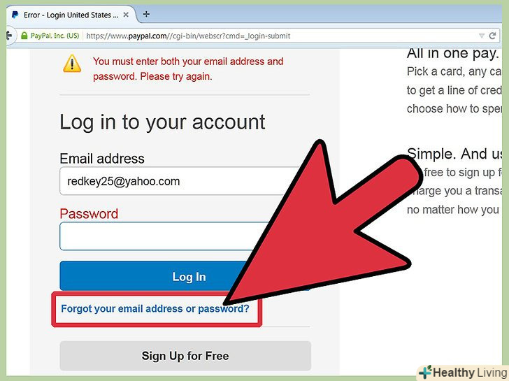 Натисніть на посилання " Problem with login "(проблема з логіном), якщо ви забули своє ім'я користувача та пароль. PayPal запитає вас про причину, чому ви не можете увійти, і дозволить вибрати такі варіанти, як: "i don't know my password "(я не знаю свого пароля) або "I don't know what email address I used" (я не знаю, яку поштову адресу я використовував).- Виберіть варіант " i don't know my password "(Я не знаю свого пароля), якщо ви забули свій пароль. PayPal попросить вас ввести свій логін-адресу електронної пошти і задасть вам кілька питань з безпеки. Якщо ви успішно відповісте на них, то PayPal надішле вам електронного листа з інструкціями про те, як змінити пароль.