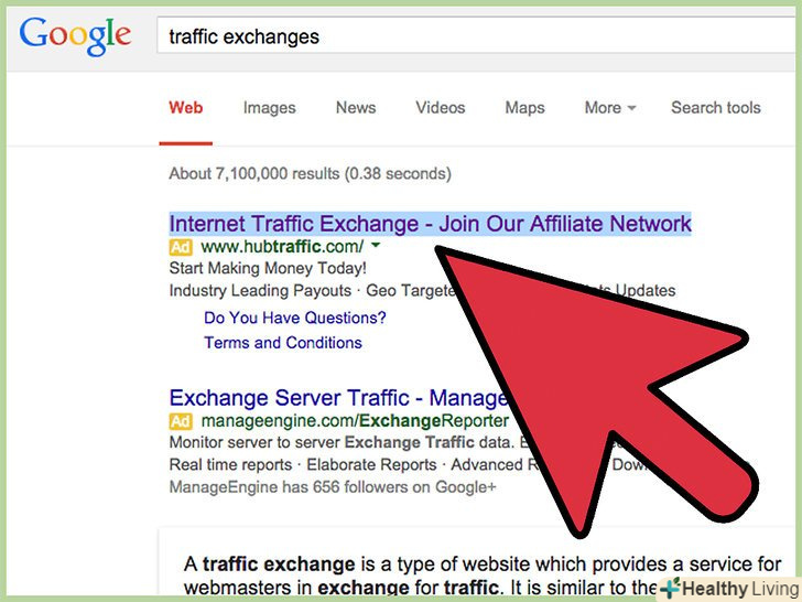 Скористайтеся системами обміну трафіком. існує багато типів обміну трафіком, але основна ідея у них одна ‒ Ви об'єднуєтеся з іншими вебмайстрами, і вони направляють до вас відвідувачів в обмін на те, що ви направляєте відвідувачів до них. Наберіть в пошуковику» обмін трафіком", щоб знайти такі сервіси.