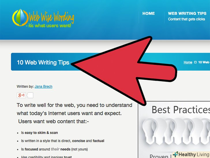 Використовуйте відповідні ключові слова для вашого контенту. Сенс ключових слів в тому, що їх використовують більшість людей, які бажають знайти вашу статтю по її тематиці. Перевірте їх за допомогою сервісу ключових слів Google і використовуйте найпопулярніше з відповідних для вашої статті ключових слів в назві вашої статті-дозволяє зрозуміти, про що саме йде мова, якщо дане слово має кілька значень. Будьте максимально конкретні і далі використовуйте ті ж ключові слова в статті, там, де це доречно. Також використовуйте різні синоніми. Тільки не перестарайтеся, інакше в Google це буде виглядати як спам. Просто використовуйте ключові слова так, щоб це виглядало природно, коли пишете про предмет статті.- Якщо ви використовуєте ключову фразу з декількома значеннями, дайте посилання для іншого значення і згадайте про це в першому абзаці. Перенаправляючи людини на сторінку з потрібним йому значенням, ви створюєте у нього гарне враження ‒ тому, можливо, йому захочеться прочитати заодно і вашу статтю.