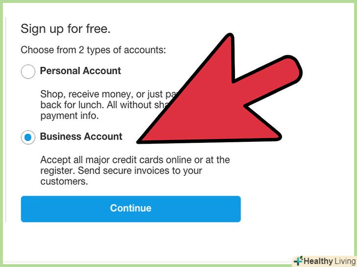 Вкажіть, для чого ви будете використовувати торговий рахунок PayPal. Є різні категорії, наприклад, якщо ви хочете приймати PayPal платежі за продукцію, яку Ви продаєте через eBay, то виберіть «PayPal для вашого бізнесу eBay».- Виберіть варіант «Я не знаю», якщо ви не впевнені, яка Категорія вам найкраще підійде. Дотримуйтесь інструкцій на екрані, щоб визначити, який тип платежів краще для вас.