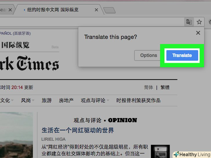 Натисніть "Перевести" у верхньому правому куті, під адресним рядком. Chrome переведе веб-сторінку на мову, яку ви використовуєте для перегляду сайтів. [3]