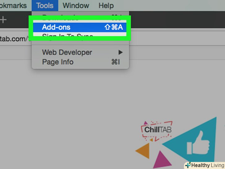 Відкрийте меню та виберіть "Доповнення", щоб відкрити вікно доповнень у новій вкладці.