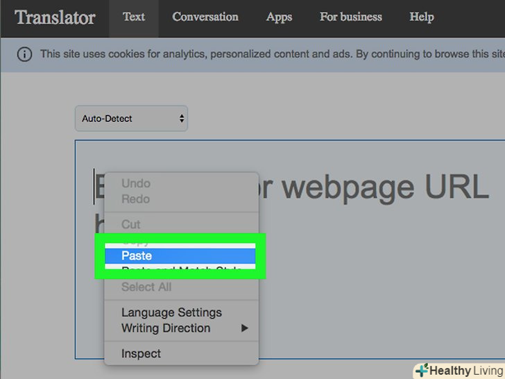 Вставте URL-адресу сторінки, яку хочете перевести, в текстове поле.