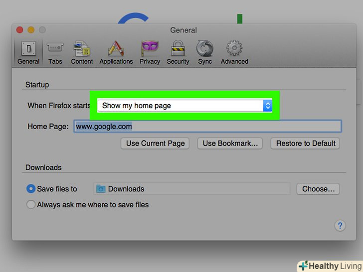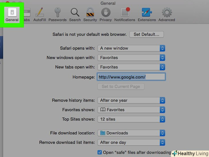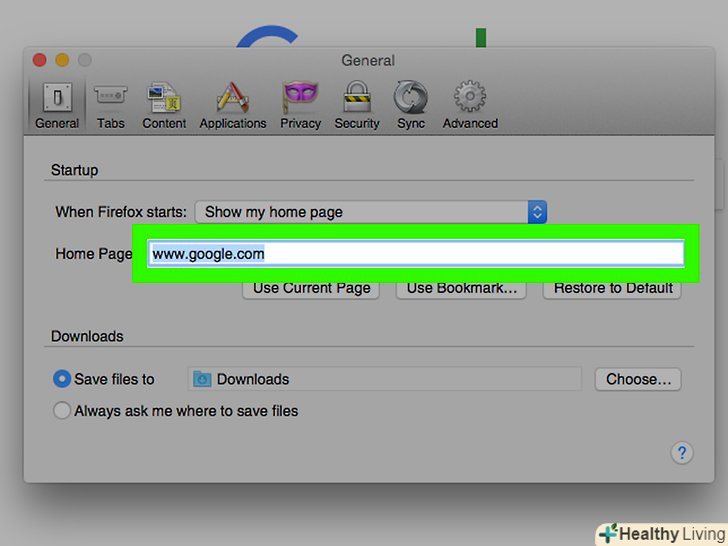 Клацніть по вкладціОсновні . вона знаходиться у верхньому лівому кутку вікна налаштувань.- Введіть www.google.com в текстове поле "Домашня сторінка". воно розташоване посередині сторінки.