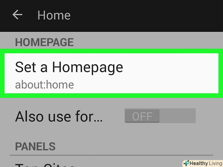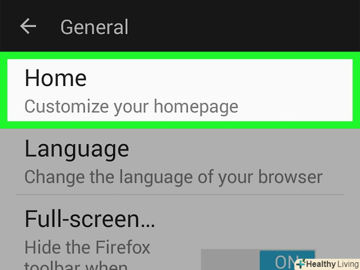 НатиснітьДомашня сторінка . ця опція знаходиться у верхній частині групи параметрів «Основні».- На Android натисніть "Основні«, а потім торкніться "будинок" у верхній частині сторінки.