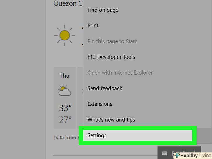 Запустіть Microsoft Edge. натисніть на значок у вигляді білої літери «е» на синьому тлі.- Натисніть… . ця опція знаходиться в правому верхньому куті вікна браузера.