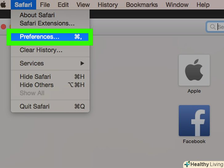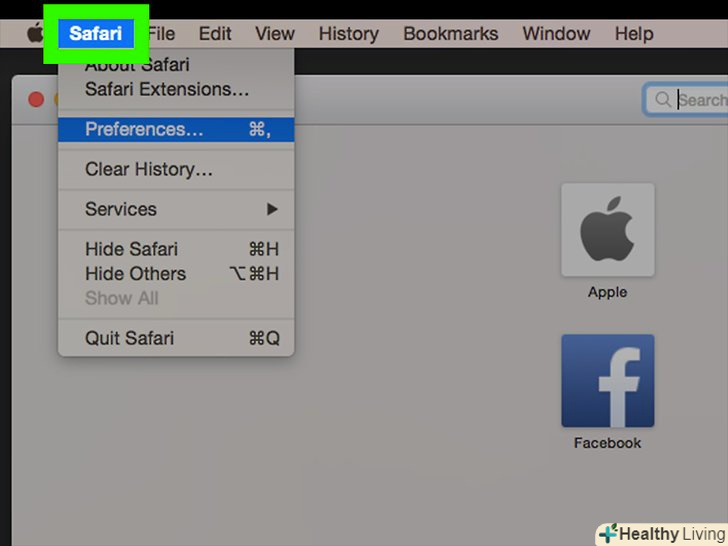 Клацніть поSafari . це меню знаходиться у верхній лівій частині екрана. Відкриється меню.