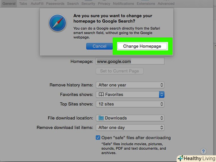 НатиснітьЗмінити домашню сторінку у вікні із запитом. сторінка Google стане домашньою сторінкою.