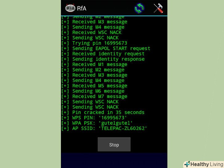 Почніть процес крекінгу. натисніть кнопку "Start attack" в нижній частині меню налаштувань Reaver. Монітор відкриється, і ви побачите відображені результати крекінгу.- Крекінг WPS може зайняти від 2 до 10 годин, і він не завжди успішний. [2]