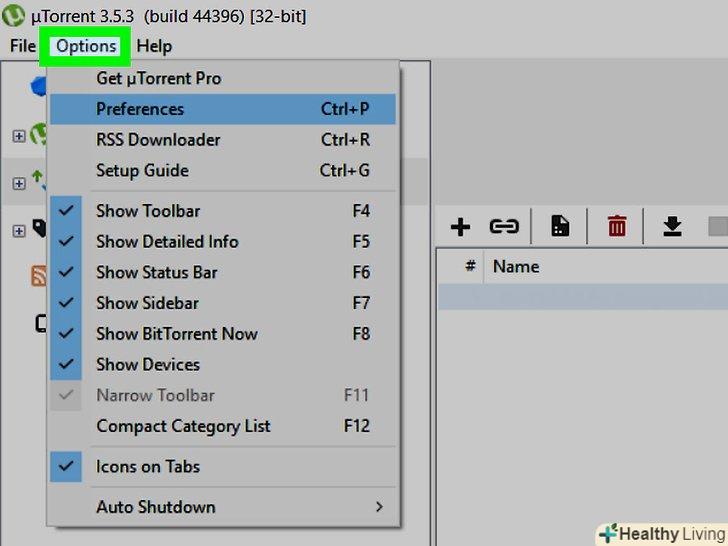 Запустіть uTorrent або BitTorrent.це два найпопулярніших торрент-клієнта.- Якщо у вас немає uTorrent, скачайте його на сайтіhttps://www.utorrent.com /