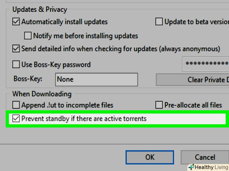 Забороніть системі переходити в сплячий режим, коли ви завантажуєте торрент-файли. для цього:- Перейдіть на вкладку "Загальні";