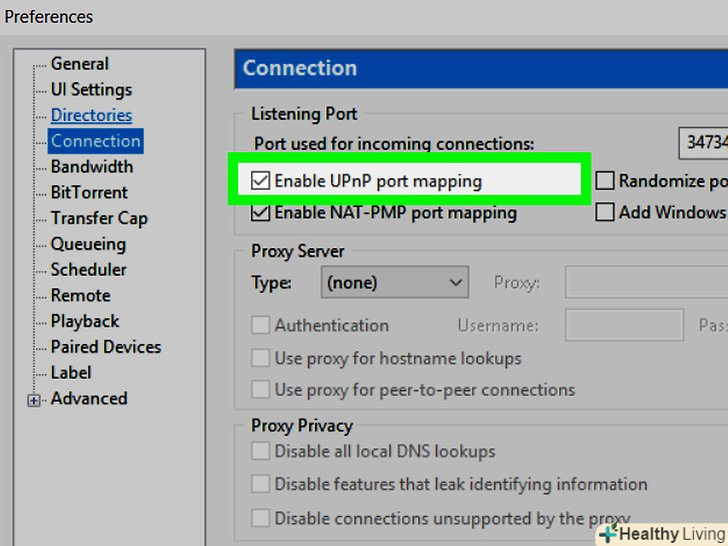 Увімкніть UPnP. UPnP-це протокол, який дозволяє торрент-клієнту отримати доступ до правильного порту (портів) маршрутизатора:- Перейдіть на вкладку "З'єднання";