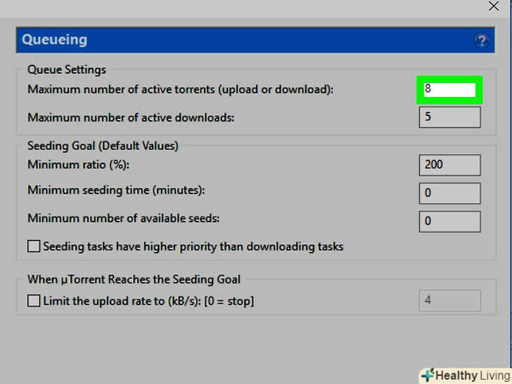 - Збільште число в текстовому полі у "Максимум активних торрентів";