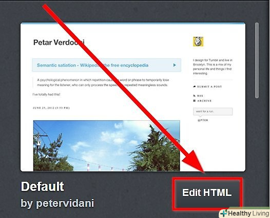 Натисніть на кнопку" Edit HTML " зліва. Якщо ви вже вибрали цю опцію, Ви побачите html-код вашого блогу під вкладкою "Theme", а не опції теми Premium.- Натисніть ctrl+F (cmd+F), щоб активувати функцію пошуку браузера. це дозволить вам знайти в коді потрібні слова.