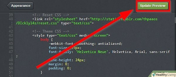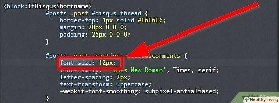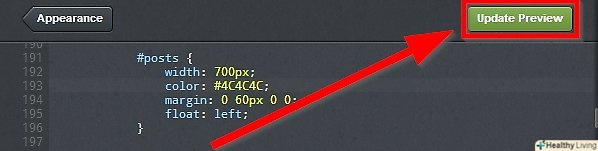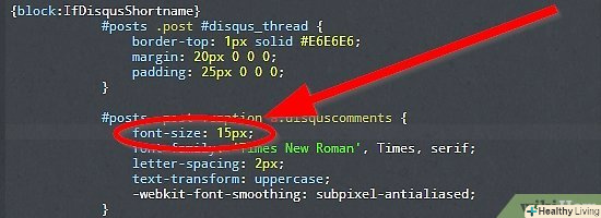 Змініть розмір шрифту, вказаний поруч з font-size, щоб змінити вигляд вибраного елемента. після розміру шрифту поставте px. У прикладі використовується 15px шрифт.- Клацніть на "Update preview" внизу праворуч, щоб подивитися, як виглядає ваш блог після цих змін.