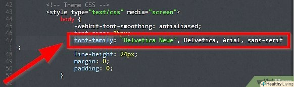 - Введіть в поле пошуку Font-family і знайдіть це слово.