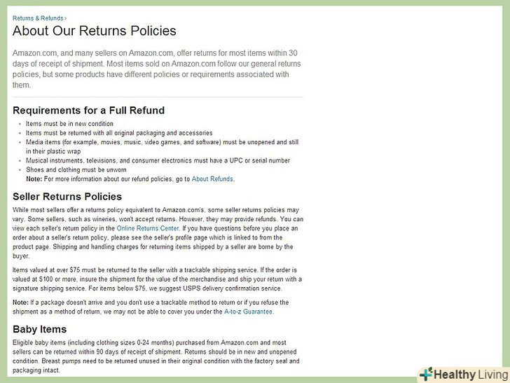 Прочитайте політику повернення товару.Одним з найголовніших відмінностей між покупкою в будівельному магазині і у продавця в Інтернеті є питання з поверненнями. Переконайтеся в тому, що торговець, у якого ви купуєте продукцію, має зрозумілу систему пересилання речі назад, і зрозумійте, що самі несете відповідальність за це.- Багато магазинів стягують додаткові збори для обробки повернень. Ця сума зазвичай вилучається з вартості товару, повернутого вами.