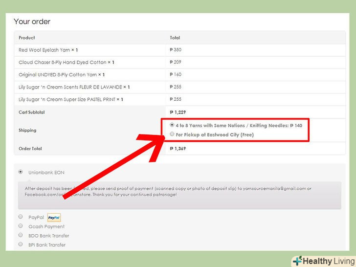 Пошукайте знижкові купони.багато роздрібних магазинів передбачають наявність поля для введення промо-кодів. Це можуть бути загальні знижки у всьому магазині або спеціальні пропозиції на конкретні продукти. Перш ніж зробити замовлення, проведіть пошук в Інтернеті знижкових кодів для конкретно цього продавця і введіть будь-який знайдений купон, доречний для вашої покупки.