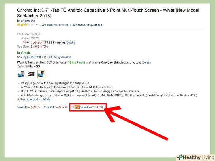 Подивіться вашу річ на порталі Amazon.крім продажу власної продукції, компанія Amazon діє в якості сполучної ланки між вами і величезною кількістю сторонніх постачальників. Різні фірми та люди використовують Amazon як спосіб продемонструвати продукцію та застосувати платіжну систему сайту. Це означає, що Amazon і його незалежні постачальники мають один з найбільших запасів товару, що знаходиться на планеті.- Amazon дозволяє постачальникам продавати вживану продукцію, так що будьте обізнані про стан товару, що купується, якщо вам обов'язково потрібен новий продукт.