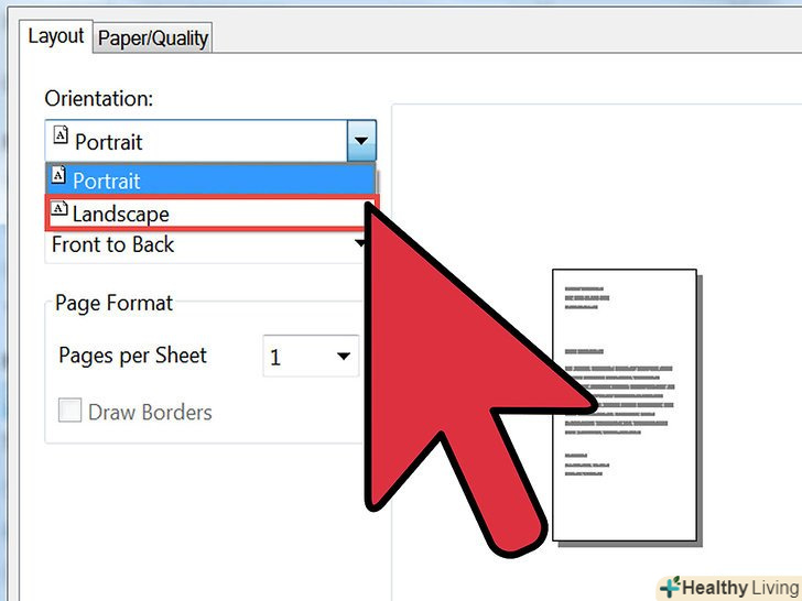 Переконайтеся в тому, що Розмітка сторінки роздруковується файлу знаходиться в режимі «альбомна орієнтація». також, встановіть такий же режим Налаштуваннях друку.