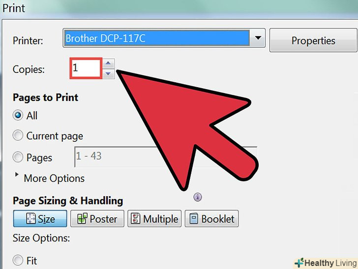 Якщо Брошура Роздрукована правильно, поверніться до головного меню налаштувань друку і позначте необхідну вам кількість брошур. вам не знадобиться повторювати кроки 3 – 5 , якщо тільки ви не закрили вікно з файлом до закінчення друку.