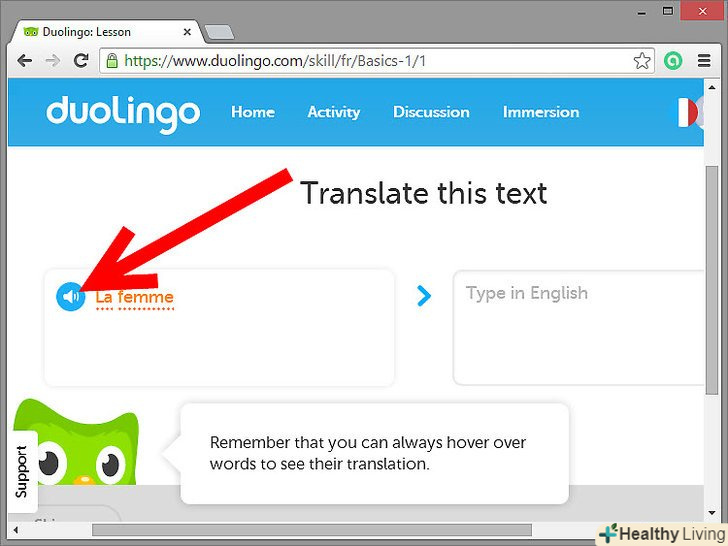 Проведіть над словами для отримання допомоги. якщо ви не впевнені в значенні слова, наведіть на нього курсор. Duolingo забезпечить переклад або дасть вам кілька варіантів.- Зверніть увагу, що під час просування в навчанні ваші пропозиції будуть ставати все більш складними, цей інструмент не буде настільки корисний. Остерігайтеся!