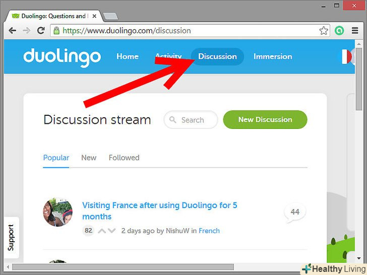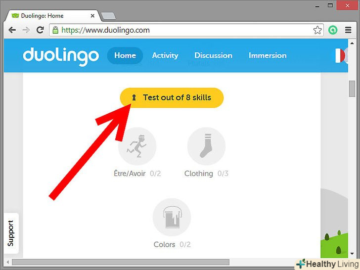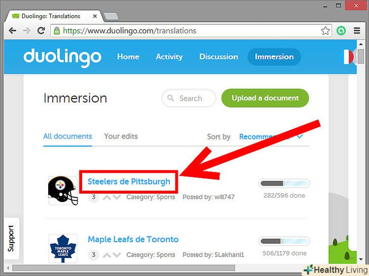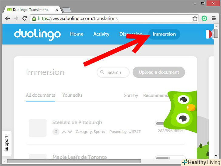 Натисніть кнопку "метод занурення" на верхній панелі. розділ "метод занурення" дозволяє перекладати фрази з реальних веб-сторінок, а також подивитися переклади інших користувачів Duolingo.