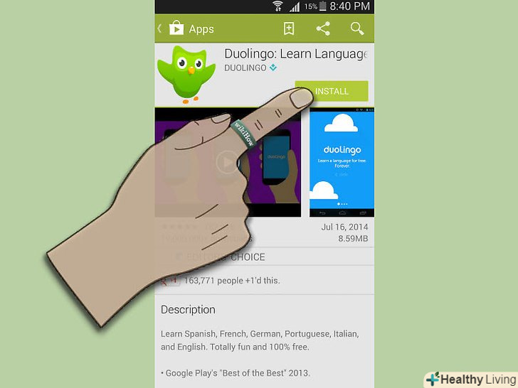 Завантажте мобільний додаток. Duolingo надається безкоштовно на iOS і Android. За допомогою програми ви можете робити уроки, практикуватися в лексиці і перекладати сторінки.