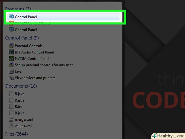 Клацніть поПанель управління . вона з'явиться у верхній частині меню «Пуск».