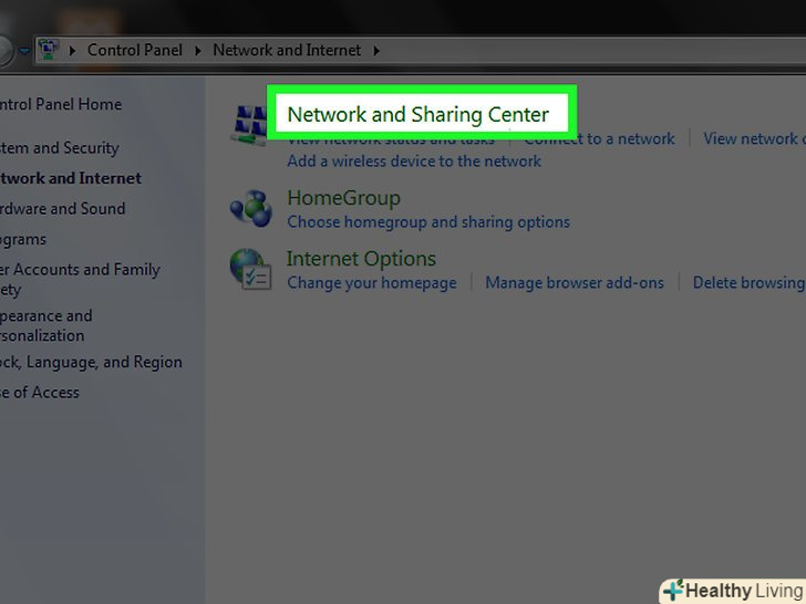 НатиснітьЦентр управління мережею і загальним доступом . ви знайдете цю опцію у верхній частині сторінки.
