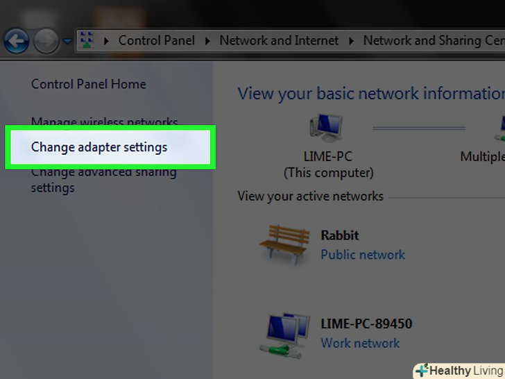 Клацніть поЗміна параметрів адаптера . це посилання розташоване у верхній лівій частині вікна.