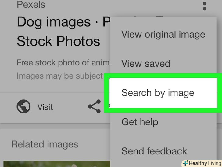 Виберіть у менюПошук по картинці . цей рядок знаходиться в середині списку опцій спливаючого меню. [1]