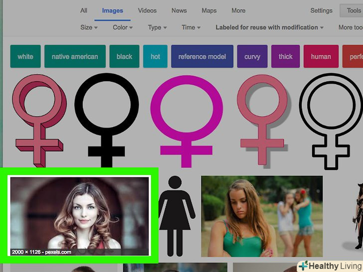 Перейдіть на вкладкуКартинки . вона розташована відразу під рядком пошуку у верхній частині сторінки. В результаті даної дії для вас відобразяться картинки, знайдені за вашим запитом.- Якщо ви не бачите вкладку"Картинки" , натисніть на кнопку "ще" , розташовану ближче до кінця ряду вкладок, а потім виберіть пункт "Картинки" зі списку опцій, що розкрився.