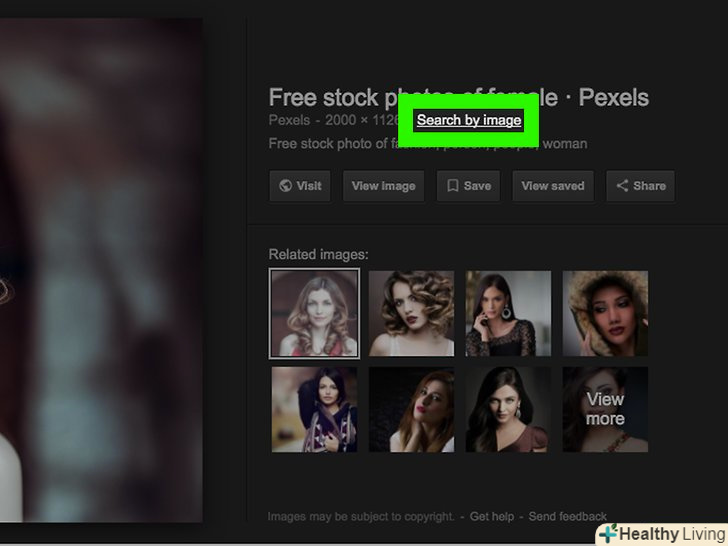 КлікнітьПошук по картинці . ця кнопка буде представлена посиланням з відповідною назвою, розташованої безпосередньо під заголовком зображення на сірій панелі праворуч.