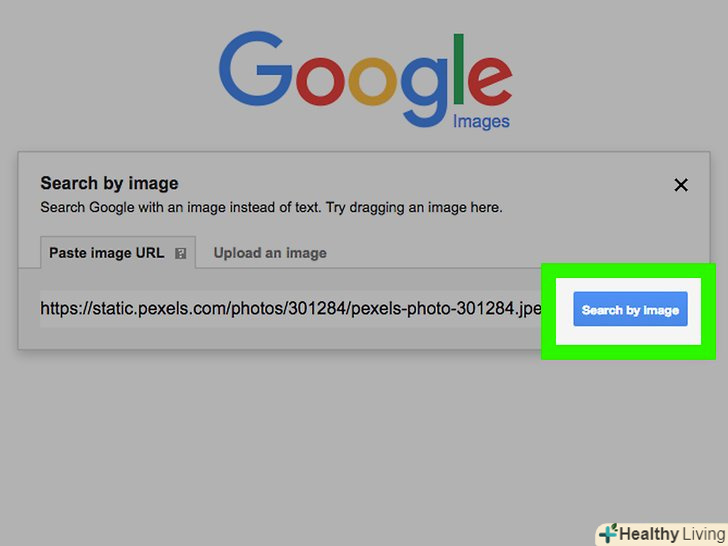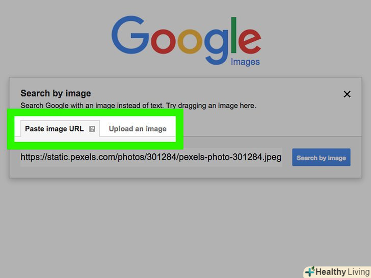 Виберіть варіант завантаження зображення для пошуку. виберіть одну з двох запропонованих вам вкладок для завантаження зображення.- Вкладка"вказати посилання" дозволяє скористатися раніше скопійованої посиланням на зображення в мережі. Щоб скопіювати посилання на конкретне зображення з мережі, відкрийте це зображення в окремій вкладці браузера і скопіюйте посилання на нього з розташованої вгорі адресного рядка, натиснувши Ctrl + C (у Windows) або ⌘ Command + C (у Mac).