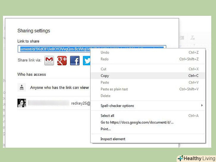 Поділіться документом.завжди можна поділитися документом з іншими користувачами Google Drive, для чого потрібно відкрити меню " Файл "і вибрати"спільний доступ". Відкриється відповідне меню, де ви зможете додавати людей в список співавторів, а також ділитися файлом через Твіттер і Фейсбук.