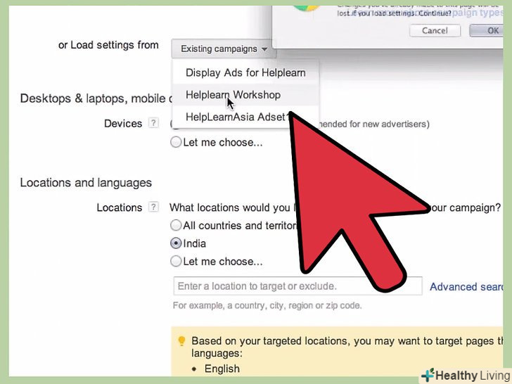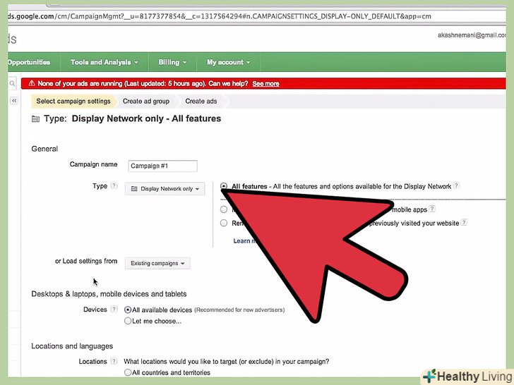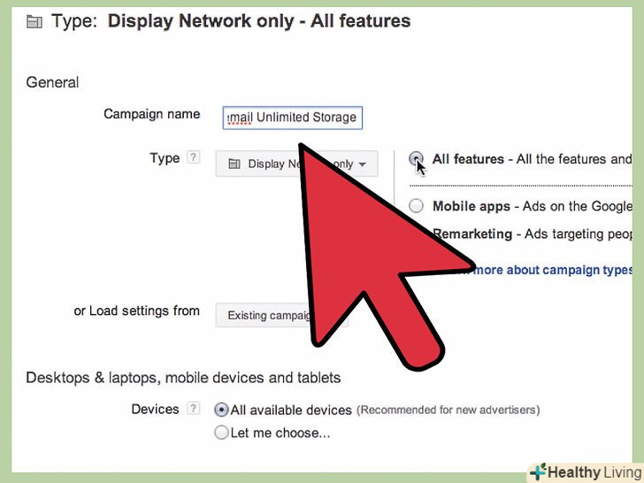 - Мережа. За замовчуванням, Google буде показувати оголошення на сайтах своєї мережі - навіть там, де ви натикаєтеся на банери типу "Ads By Google". Якщо ви хочете, щоб оголошення показувалося тільки в Google і в обмеженому числі його партнерів з пошуку, приберіть галочку з опції "відображати мережу".
