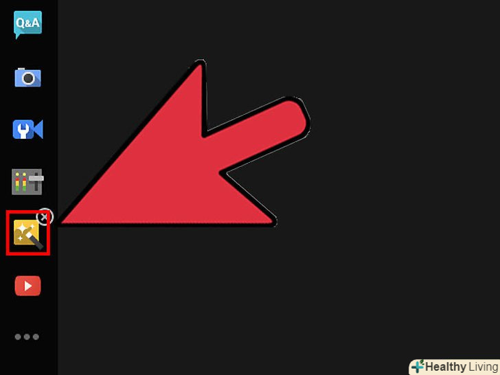Додайте ефекти у відео. Натисніть на кнопку Google Effects в меню зліва. Меню ефектів з'явиться праворуч замість вікна чату. Ви можете накладати спецефекти на відео, такі як рамки, окуляри, капелюхи та інші приколи.- Натисніть на стрілочки вгорі сторінки з ефектами, щоб змінити категорії.