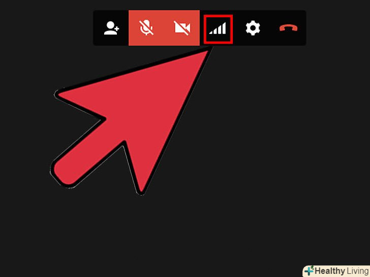 Вимкніть мікрофон або камеру. якщо вам необхідно вимкнути мікрофон, натисніть на кнопку в правій частині вікна, яка виглядає як перекреслений косою лінією мікрофон. Коли мікрофон відключений, значок стає червоним.- Щоб відключити показ відео, натисніть на значок камери з перекресленою лінією. Співрозмовники все одно будуть вас чути, якщо тільки ви не відключите і мікрофон.