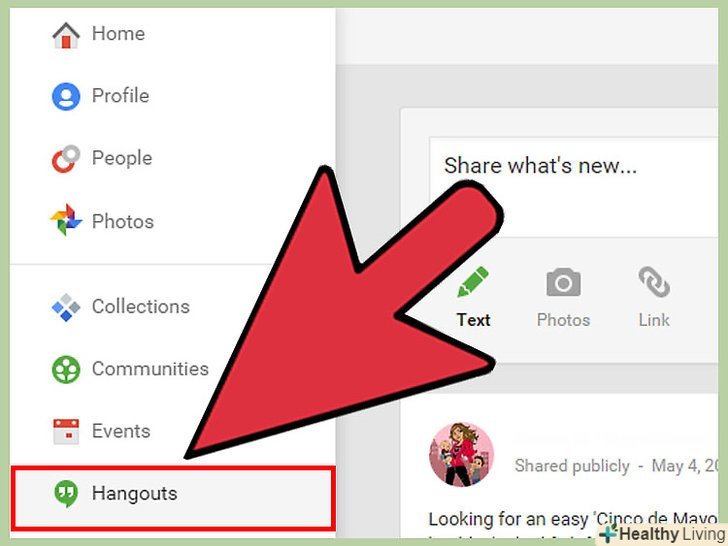Відвідайте сайт Hangouts. отримати доступ до Hangouts On Air можна і не через сайт Google+. На сайті Hangouts відображаються поточні бесіди, за якими ведеться трансляція, а так само стандартна панель інструментів Hangouts.- Посилання на Hangouts On Air можна знайти в меню зліва на домашній сторінці Google+.