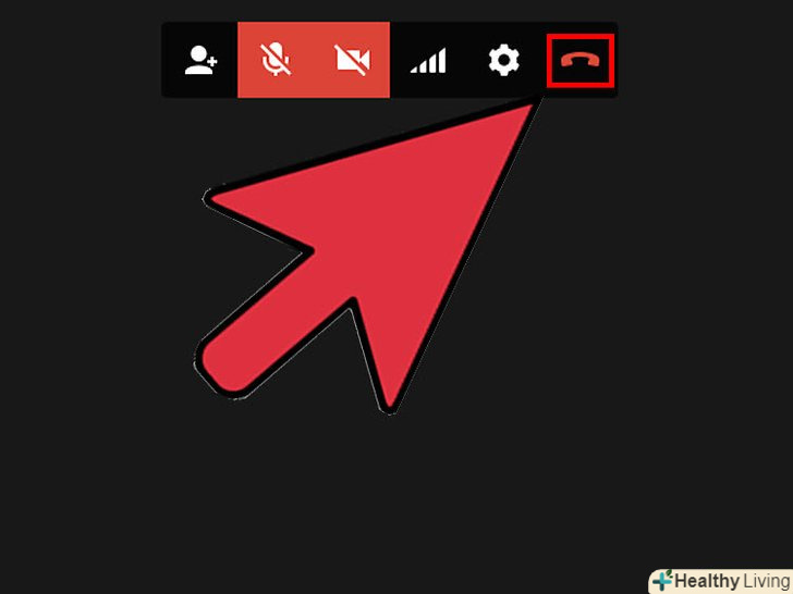 Покиньте Hangout –діалог. після того, як ви закінчили спілкування, натисніть кнопку виходу, яка знаходиться в правому верхньому куті вікна розмови. Значок виглядає як телефонна трубка, яку поклали на базу.