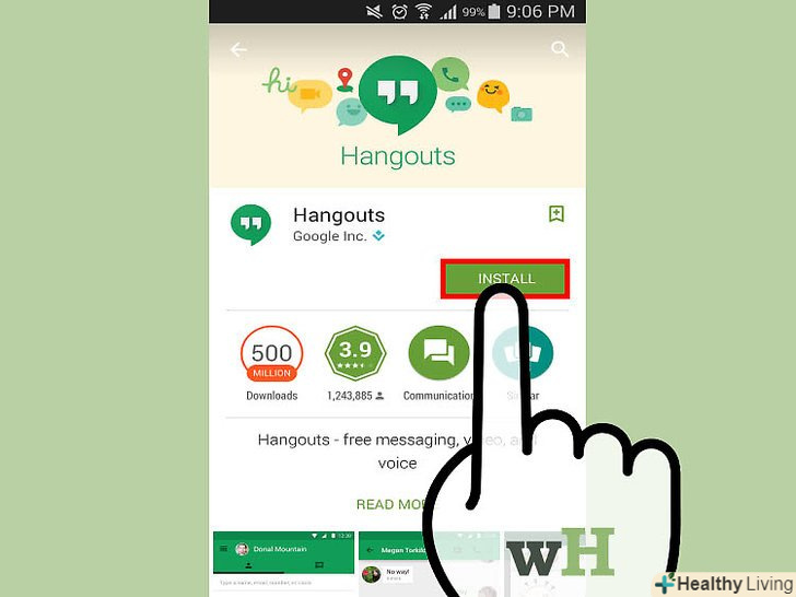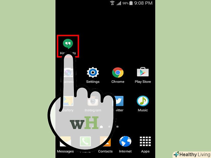Скачайте додаток. зайдіть в Google Play Маркет на своєму пристрої під управлінням ОС Android або ж Магазин додатків на пристроях на основі платформи device і введіть в пошуку «Hangouts». Додаток є безкоштовним для скачування.- У багатьох пристроях під управлінням ОС Android додаток Hangouts встановлено за замовчуванням. Воно є заміною старому додатку Google Talk.